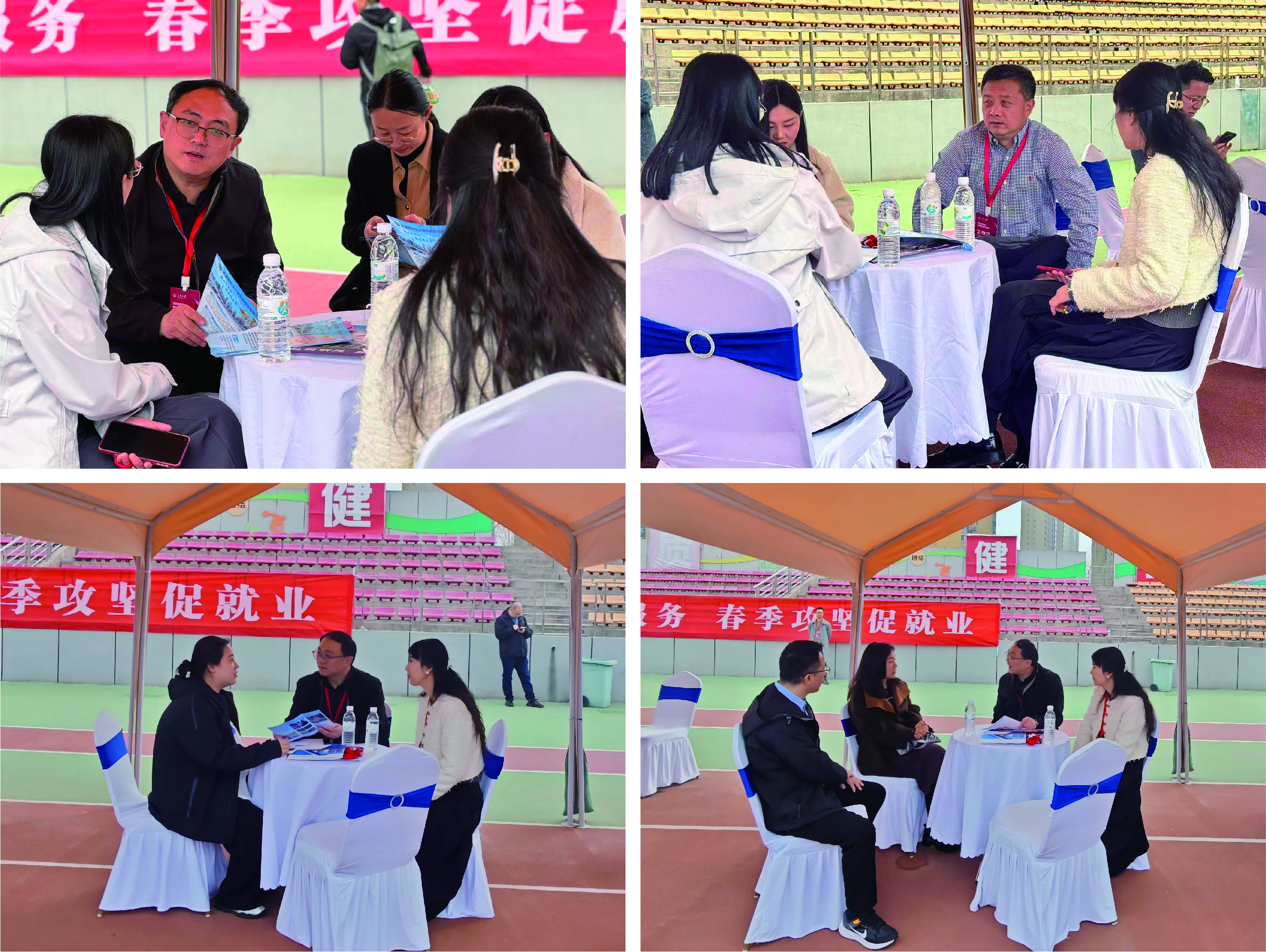 无码av 2026届毕业生春季就业双向选择洽谈会(以下简称“双选会”)于2026年3月25日在北校区朝晖体育场举办,共800余家就业单位参会。为加强与各用人单位交流合作,进一步建立用人单位与毕业生的有效对接,无码av 党委书记贾侃、院长侯全华、副书记王妍婷及全体辅导员参加本次双选会,积极开展访企拓岗工作。